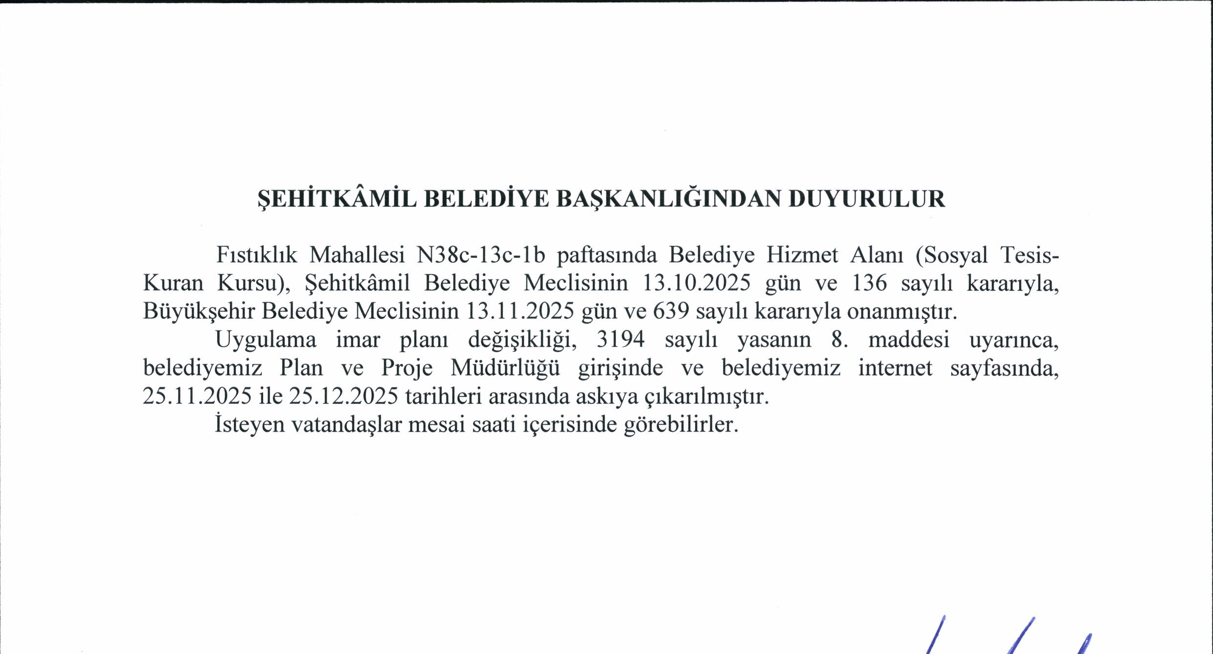 - Fıstıklık Mahallesi İmar Planı Değişikliği