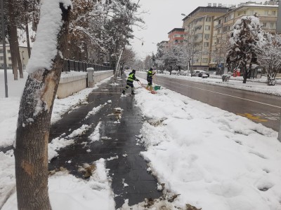 Şehitkamil Belediyesi Fen İşleri, Temizlik İşleri ile Park ve Bahçeler Müdürlüğü ekipleri, kar yağışının başladığı ilk andan itibaren adeta mahallelere konuşlandı. Ana arterler, cadde ve sokaklarda kar küreme ve tuzlama çalışmaları aralıksız sürdürülürken; hastane, kamu kurumları, okul ve yoğun kullanılan alanlarda öncelikli müdahaleler gerçekleştirildi. Ekipler, olası buzlanma ve ulaşım aksaklıklarına karşı sürekli teyakkuz halinde görev yaptı.