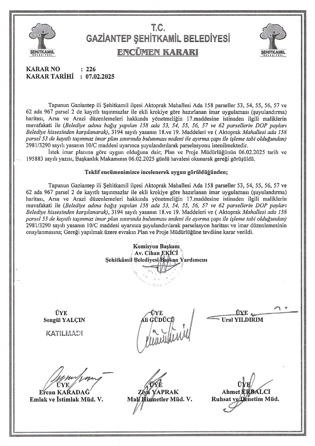 - 15 Temmuz Mahallesi Uygulama İmar Planı Değişikliği
