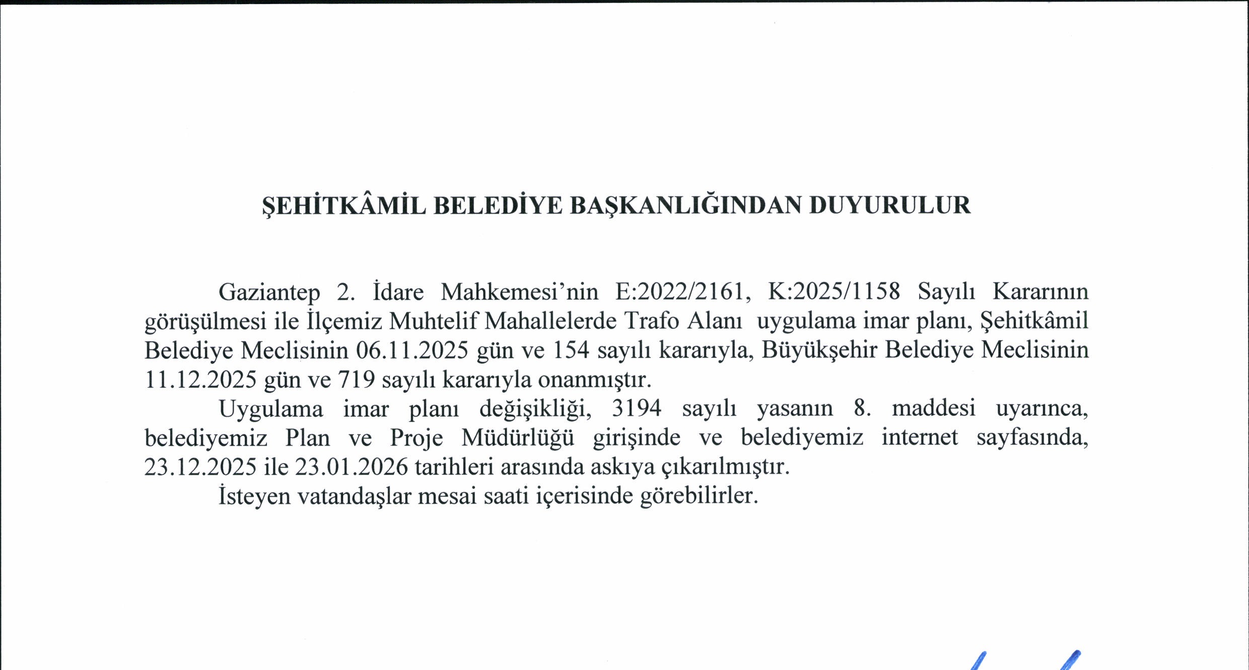 - İlçemiz Muhtelif Mahallelerinde Trafo Alanı Uygulama İmar Planı Değişikliği