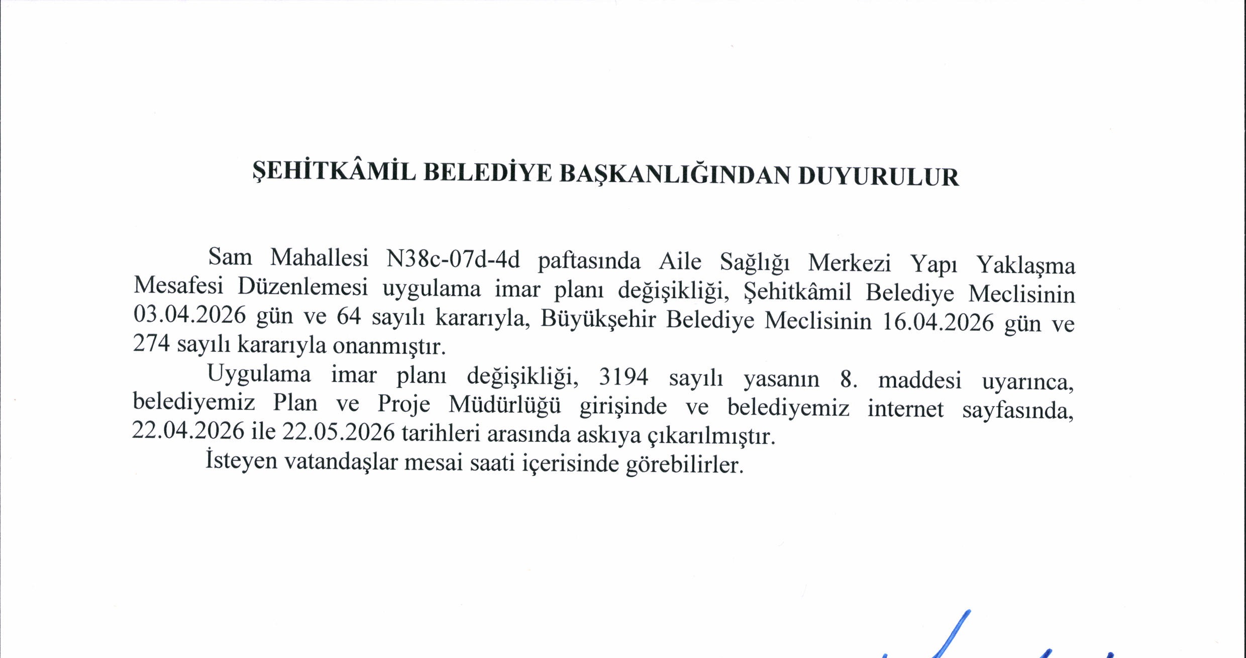 Sam Mahallesi Uygulama İmar Planı Değişikliği