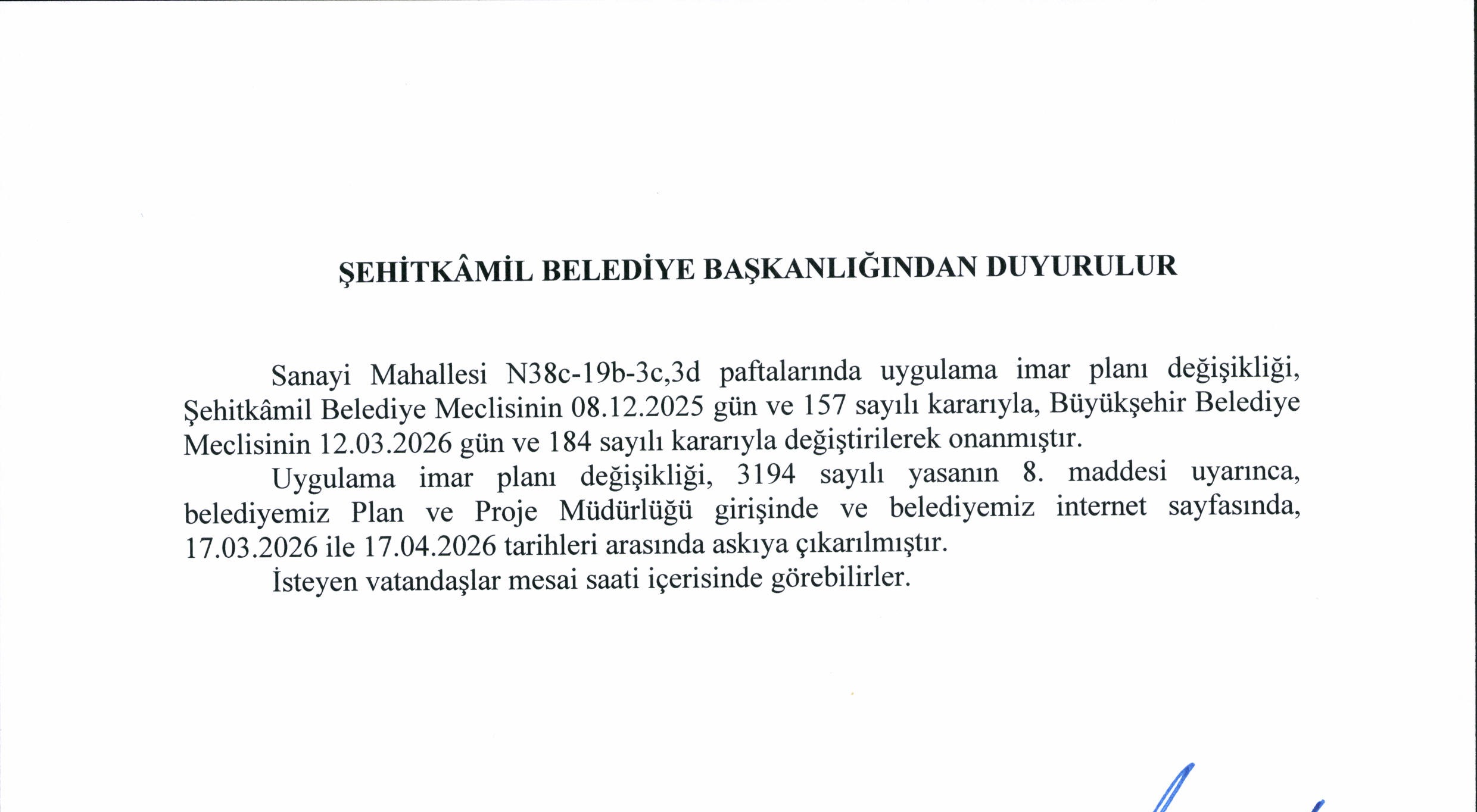 - Sanayi Mahallesi Uygulama İmar Planı Değişikliği
