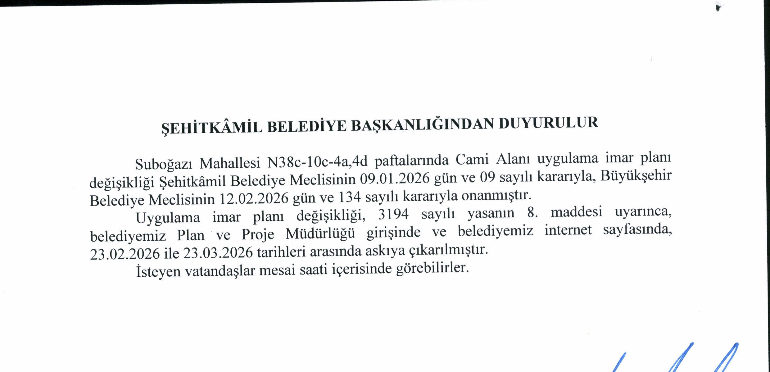 - Suboğazı Mahallesi Cami Alanı Uygulama İmar Planı Değişikliği